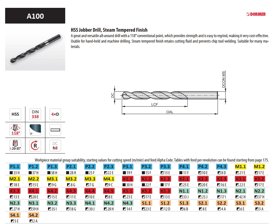 ดอกสว่าน DORMER A100 ALL SIZE 0.2-20 MM.