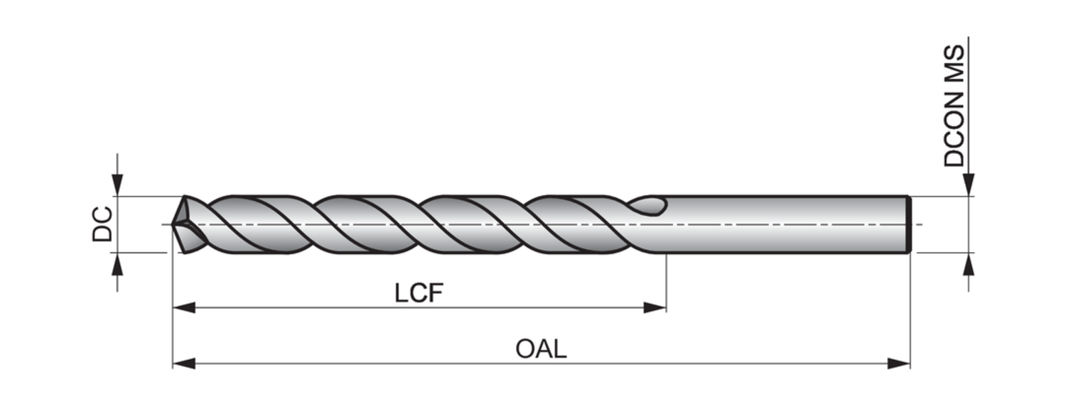 Jobber length drill with straight shank, diameter 9.6mm with an overall length of 133mm and flute length of 87mm according to DIN 338 standard with 135° split point, HSS with steam tempered finish and quick spiral for 4xD drilling without pecking in stainless steel